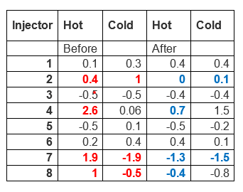 In this situation, the owner of a 70 series Toyota Troopy with 155 000 Kms on the clock had his Toyota injectors tested at the local Toyota dealer. From the Toyota report it showed injectors 4 and 7 had high values and of course recommended the injectors be replaced.