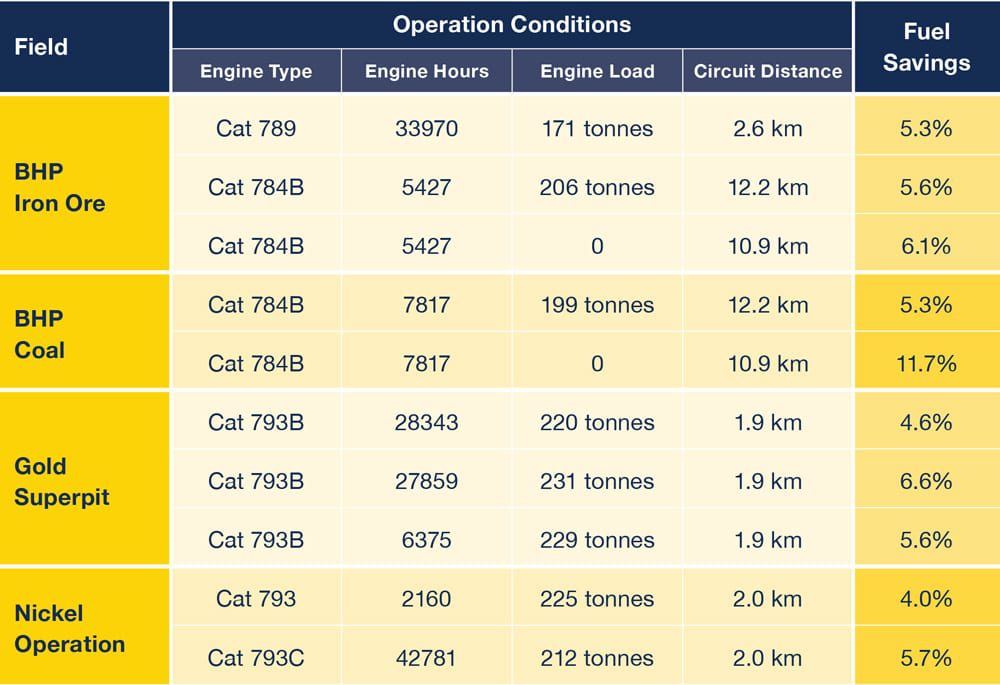 • Fuel efficiency and emission reduction trial NSW Surface Mine
